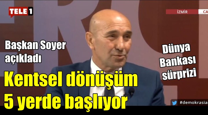 Başkan Soyer, ilk kez bu kentsel dönüşüm ihalelerine İzmir Büyükşehir Belediyesi şirketlerinin de gireceğini açıkladı. "Kentsel dönüşümü biz yapağız. Bu yeni bir şey" diyen Başkan Soyer, geçen aylarda Dünya Bankası yetkilileriyle yaptıkları görüşmeyi de hatırlattı. Başkan Soyer, Dünya Bankası yetkililerini İzmir'deki kentsel dönüşüm projelerini desteklemeye ikna ettiklerini belirtirken, "Daha önce Hindistan'da denemişler ama olmamış. Bizim projemizle yakından ilgilendiler. Destek vereceklerini söylediler. Dünya Bankası'nın finansal desteğiyle 5 bölgede kentsel dönüşüme başlayacağız" dedi.