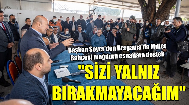 Başkan Soyer, "Süreci siz yaşıyorsunuz, biz de takip ediyoruz. Bildiğiniz gibi bununla ilgili bir dava sürecini de başlatmıştık. Fakat görünen o ki sorun var. Biz, bundan sonra nasıl bir yol izleyelim, bunu beraber konuşup kararlaştıralım diye geldik. Sizlerin fikirlerini, önerilerini almak istiyorum. Biz sonuna kadar yanınızda olacağız, hakkınızı koruyacağız" dedi.