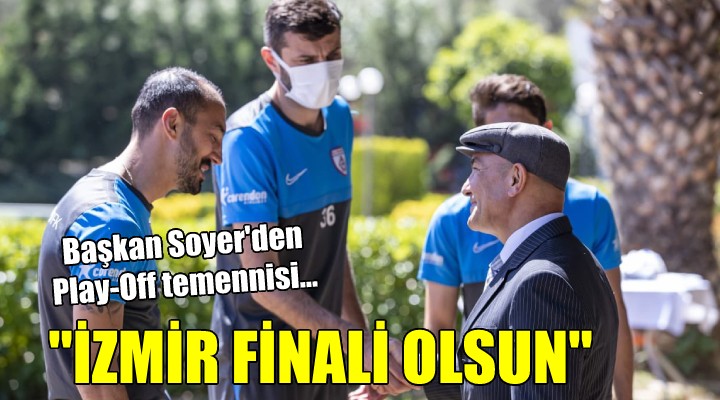 SONKALEİZMİR-İzmir Büyükşehir Belediye Başkanı Tunç Soyer, Spor Toto 1. Lig Play-Off'unda 1-0 galip geldiği maçın rövanşında cumartesi günü deplasmanda Samsunspor'la karşılaşacak Altınordu'ya moral verdi. İzmir ekibini ziyaret eden, yönetici ve futbolcularla bir araya gelen Başkan Soyer, Play-Off'taki diğer İzmir ekibi Altay'ı da unutmadı. Başkan Soyer, "19 Mayıs Atatürk'ü Anma, Gençlik ve Spor Bayramı'nı kutlamak ve Play-off finali yolunda başarı dilemek üzere Altınordu Spor Kulübü'nü ziyaret ettik. Sporcu kardeşlerimin başaracağına inancım tam. İki İzmir takımını finalde izlemek büyük bir zevk olacak" dedi.