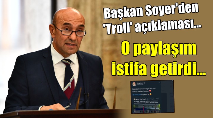 SONKALEİZMİR-İzmir Büşükşehir Belediye Başkanı Tunç Soyer, AK Parti cehpesinden 'Troll' eleştirilerine neden olan sosyal medya paylaşımı nedeniyle açıklama yaptı. Başkan Soyer, "Kişisel sosyal medya hesabıma mesajları girmekle sorumlu bir personel, kendi hesabından attığını düşünerek bir paylaşımda bulunmuştur. Hatasını fark edip sorumluluğu gereği istifasını vermiştir. Tunç Soyer veya İzmir Büyükşehir Belediyesi'nin bir tek sahte hesabı yoktur. Trol ordusu besleyenlerin bunu anlamasını beklemediğimden, açıklamayı kamuoyuna saygım gereği yapıyorum" dedi.