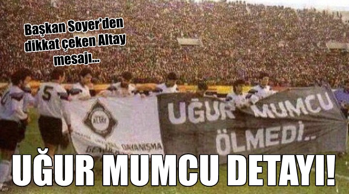 SONKALEİZMİR- İzmir Büyükşehir Belediye Başkanı Tunç Soyer, Süper Lig'e yükselen Altay'ı merhum gazeteci Uğur Mumcu'yu anarak kutladı. İzmir ekibinin, 1993 yılında bir suikaste kurban giden Uğur Mumcu'nun vefatı sonrası sahaya "Uğur Mumcu ölmedi" yazılı pankartla çıktığı bir fotoğrafı sosyal medya hesabından paylaşan Başkan Soyer, "Altay asla sadece Altay değildir" mesajını verdi.