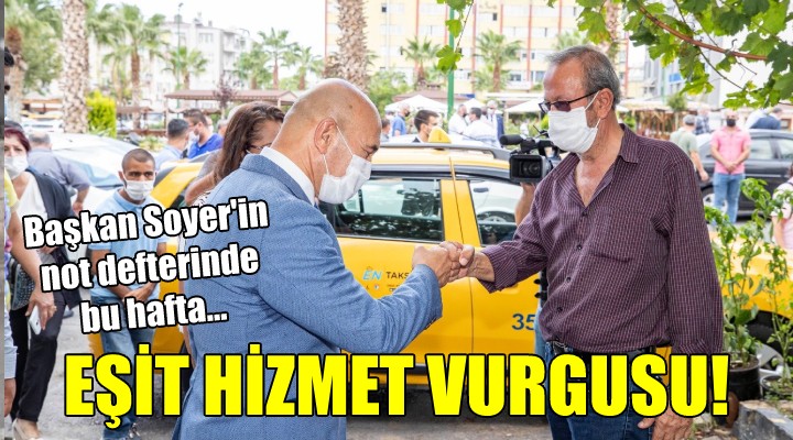 SONKALEİZMİR-İzmir Büyükşehir Belediye Başkanı Tunç Soyer haftalık not defterinde şu ifadeleri kullandı: İzmir'in 30 ilçesindeki yurttaşlarımıza hiçbir ayrım yapmadan eşit hizmet götürmek için var gücümüzle çalışıyoruz.