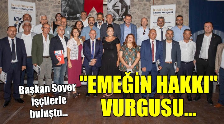 İzmir Büyükşehir Belediye Başkanı Tunç Soyer, İkinci Yüzyılın İktisat Kongresi için düzenlenen paydaş buluşmaları kapsamında çiftçilerden sonra işçi ve işçi sendikalarının temsilcileriyle bir araya geldi. Tarihi Havagazı Fabrikası Kültür Merkezi’ndeki toplantının açılış konuşmasını yapan İzmir Büyükşehir Belediye Başkanı Tunç Soyer, sözlerine “Bugün İzmir için, Türkiye için tarihi bir gün” diyerek başladı. Kentte 100 yıl öncesinde yapılan İktisat Kongresi’ne değinen Başkan Soyer, Ulu Önder Mustafa Kemal Atatürk’ün o kongredeki açılış konuşmasını okudu ve 12 maddelik sonuç bildirgesine dikkat çekti.