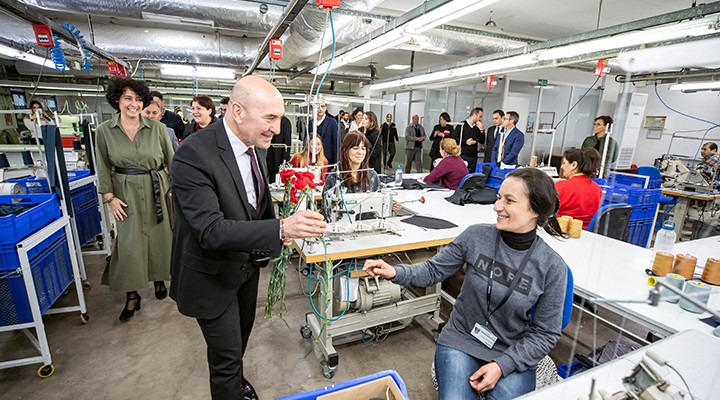 İzmir Büyükşehir Belediye Başkanı Tunç Soyer, Büyükşehir’in “Kadın Emeği Hayat İlmeği” adındaki sosyal sürdürebilirlik projesinin ortağı Roteks Tekstil’in kadın çalışanlarıyla bir araya geldi. Toplantı da proje kapsamında Bayraklı Masal Evi’nde tekstil kurslarına katılan kadınlar da vardı.