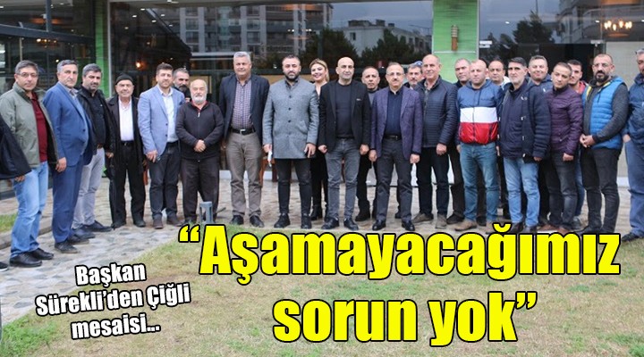 STK temsilcilerinin Çiğli’nin mezarlık ihtiyacını dile getirmesi üzerine konuşan Başkan Sürekli; “Bu söylendiği gibi önemli bir konu, önemli bir ihtiyaç. Çiğli’nin mezarlık ihtiyacı konusunda, Milli Emlak’tan arazi tahsisi hususunda, diğer birkaç ilçemizde olduğu gibi gerekli desteği veririz. Haklısınız. Çiğli’nin bir mezarlığı olmalı. Yine bizim işimiz değil demeden, üzerimize düşeni yapmaya hazırız.” diye konuştu.