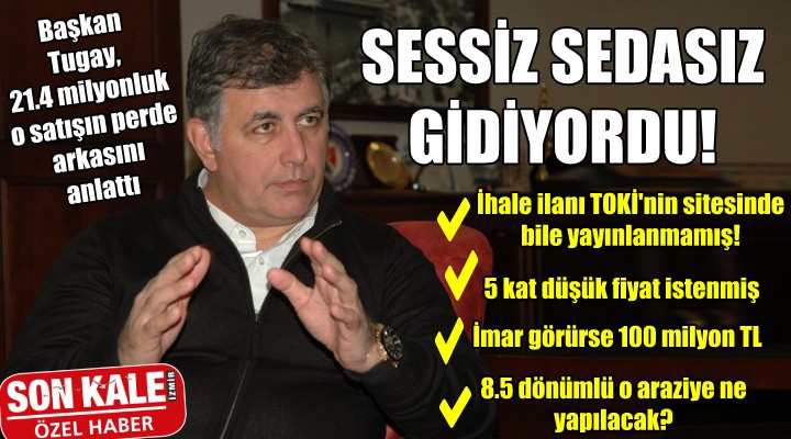 İhale günüyle ilgili ilginç detaylara da yer veren Başkan Tugay, "Eğer bu arazinin ihalesine herhangi bir kimse girse, fiyat artırsa biz de artıracaktık. Yükseltebileceğimiz oranda fiyatı yükseltip araziyi başkalarına vermemeyi kafamıza koymuştuk" dedi.