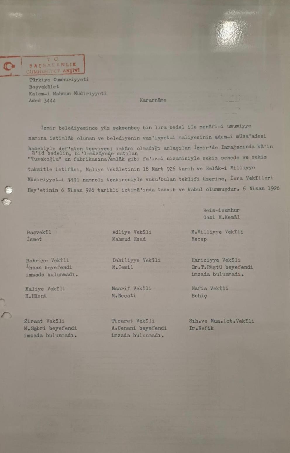 Tugay 3 taşınmazın cumhuriyetin ilk yıllarından itibaren İzmir Büyükşehir Belediyesi'ne ait olduğu belgeleri de kamuoyu ile paylaştı.