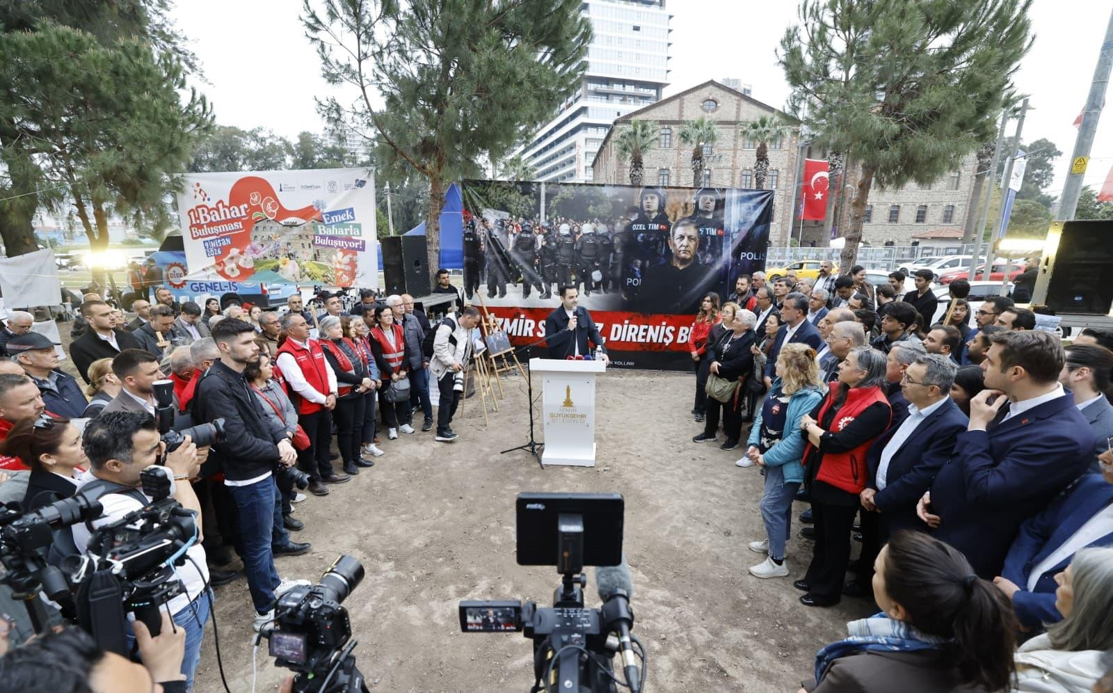İzmir Büyükşehir Belediye Başkanı Dr. Cemil Tugay, binlerce genç için gelecek umudu olan Meslek Fabrikası’na Vakıflar Genel Müdürlüğü tarafından hukuksuz bir şekilde el konulmasının ardından başlatılan nöbetin 11’inci gününde düzenlenen basın toplantısına katıldı. Meslek Fabrikası karşısında oluşturulan Pankart Atölyesi Alanı’ndaki buluşmaya Cumhuriyet Halk Partisi (CHP) İzmir İl Başkanı Çağatay Güç, CHP Gençlik Kolları Genel Başkanı Cem Aydın, TMMOB İzmir İl Koordinasyon Kurulu (İKK) Sekreteri Aykut Akdemir, milletvekilleri, siyasi partilerin temsilcileri, gençler, CHP örgütlerinin, sivil toplum kuruluşlarının ve sendikaların temsilcileri ile İzmirliler destek verdi.