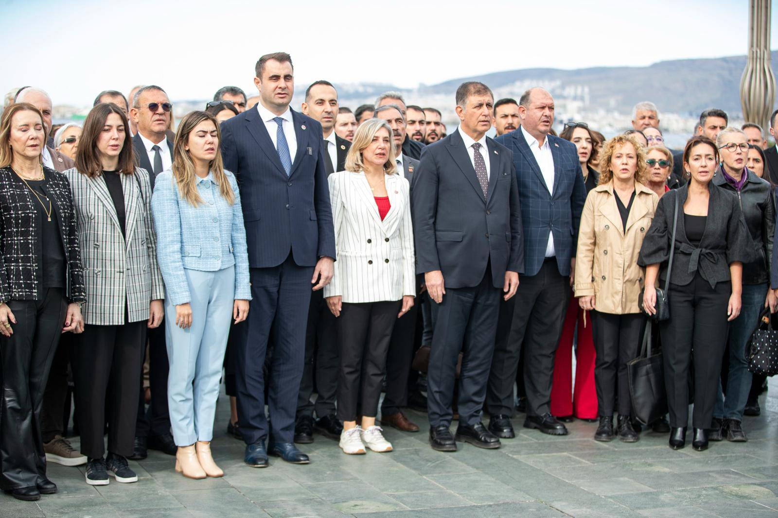 İzmir Büyükşehir Belediye Başkanı Dr. Cemil Tugay, 24 Kasım Öğretmenler Günü kapsamında Cumhuriyet Halk Partisi (CHP) İzmir İl Başkanlığı tarafından organize edilen kutlama etkinliğine katıldı. Cumhuriyet Meydanı’nda düzenlenen etkinliğe Başkan Dr. Cemil Tugay’ın yanı sıra CHP İzmir İl Başkanı Çağatay Güç, Konak Belediye Başkanı Nilüfer Çınarlı Mutlu, Menderes Belediye Başkanı İlkay Çiçek, CHP İzmir İl yönetimi, CHP ilçe başkanları, meclis üyeleri, öğretmenler ve çok sayıda İzmirli katıldı. Etkinlik kapsamında ilk olarak CHP İzmir İl Başkanı Çağatay Güç, CHP İzmir İl Kadın Kolları Başkanı Zahide Kurun, CHP İzmir İl Gençlik Kolları Başkanı Ruhsar Selis Çelik, meydandaki Atatürk anıtına çelenk bıraktı.