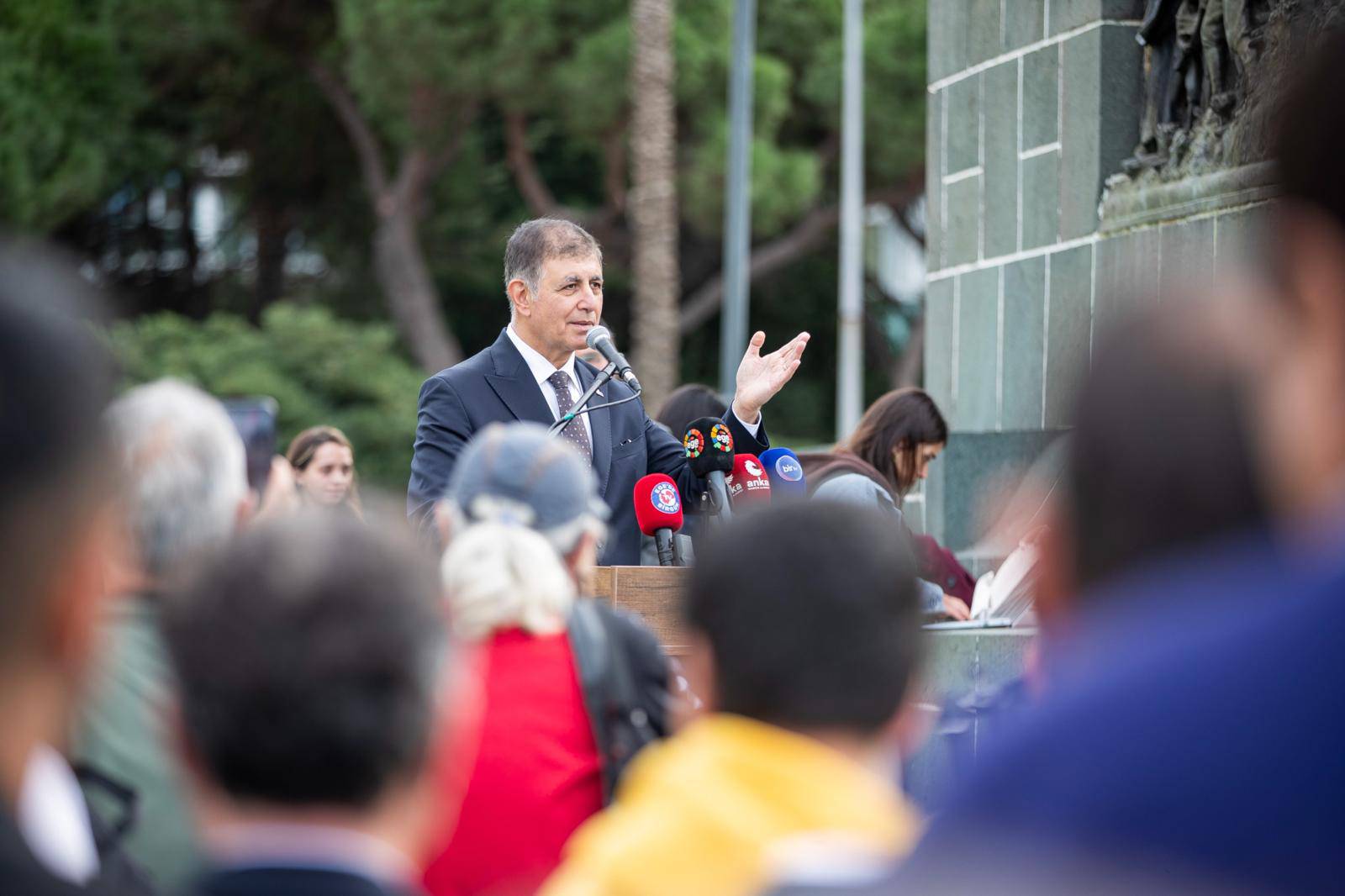 Çelenk töreninin ardından konuşan Başkan Dr. Cemil Tugay, Başöğretmen Gazi Mustafa Kemal Atatürk başta olmak üzere tüm eğitimcilerin Öğretmenler Günü’nü kutlayarak sözlerine başladı. Başkan Tugay, “Öğretmenler hepimizin annesi, babası, ağabeyi, ablası gibi eğitim sürecimizde bir arada olduğumuz, yakınlaştığımız insanlar. Onlar bize sadece bir şeyler öğreten değil, zor zamanlarımızda, zor anlarımızda bize sahip çıkan insanlar. O nedenle mümkün olduğunca çok öğretmenlerimizi hatırlayacağız. Onlara minnetimizi, sevgimizi, saygımızı dile getireceğiz. Bu hikayenin başında bir başöğretmen var. Bu ülkedeki demokratik insan haklarına sahip olmaları gerektiğini öğretmiş bir liderimiz var” diye konuştu.