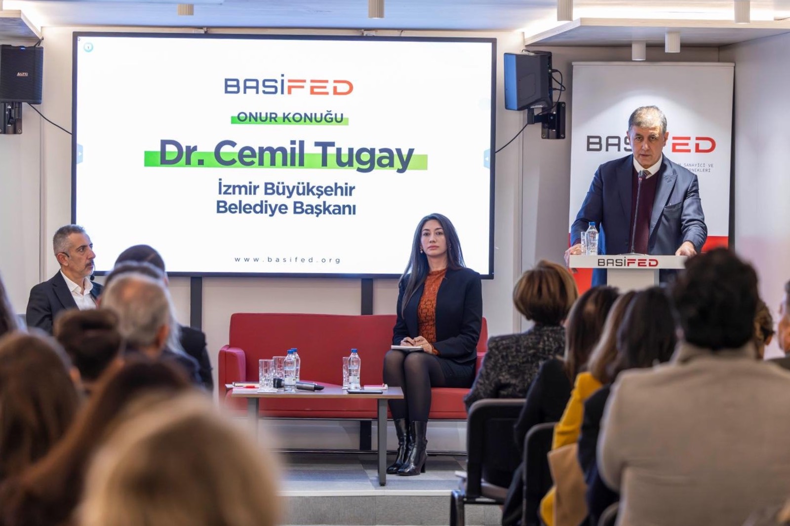Batı Anadolu Sanayici ve İş İnsanları Dernekleri Federasyonu (BASİFED) bünyesinde faaliyet gösteren Yeşil Dönüşüm Komisyonu, iş dünyası, yerel yönetimler ve kamu kurumları arasındaki iş birliğini güçlendirme hedefi doğrultusunda bir toplantı düzenledi. Toplantıda, İzmir Planlama Ajansı (İZPA) tarafından hazırlanan “Enerji ve Malzeme Güvenliği Raporu” komisyon üyeleriyle paylaşıldı. Toplantıya katılan İzmir Büyükşehir Belediye Başkanı Dr. Cemil Tugay, kentin enerji politikasının oluşturulmasının önemine dikkat çekerek, İzmir’in kendi enerjisini üreten bir pozitif enerji bölgesine dönüşmesi gerektiğini ifade etti. Başkan Tugay, yalnızca tüketimi karşılayan değil, tüketilenin üzerinde enerji üretebilen sistemlere sahip olunmasının hedeflenmesi gerektiğini vurguladı.