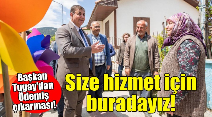 Başkan Turan, “İzmir Büyükşehir Belediye Başkanımız Dr. Cemil Tugay bizlerle birlikte. Görev süremizce sizlerin ihtiyacı olan çalışmaları Cemil Başkanımızla iş birliği içinde yapacağız. Hak ettiğiniz hizmeti birlikte sunacağız” ifadelerini kullandı.