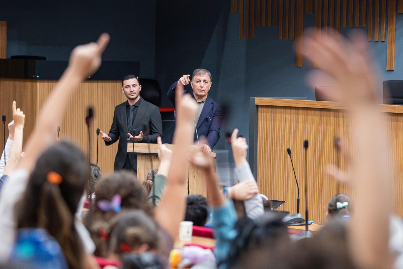 20 Kasım Dünya Çocuk Hakları Günü’nün önemine değinen Çocuk Meclisi Üyesi Zeynep Talay ise, “Çocuk haklarını özgürce konuşabildiğim için çok mutluyum. Ama ülkemizde ve dünyada bazı çocuklar okula gidemiyor, bazıları savaşlar nedeniyle hayatlarını kaybediyor, bazıları erken yaşta evlendiriliyor, bazı çocuklar ise oyun oynamaları gerekirken çalışmak zorunda kalıyor. Tam da bu yüzden fikirlerimizi ifade edebildiğimiz, haklarımızı öğrendiğimiz Çocuk Meclisi çok önemli. Burada sadece kendi sesimiz için değil, haklarına ulaşamayan tüm çocuklar için varız. Çocuk Meclisi’ni ülkemize yaymak ve çocukların baskı altında kalmadan yaşayabilmelerini istiyoruz. Tüm çocuklar eşittir ve eşit haklara sahiptir. Bizler bağımsızlığını Gazi Mustafa Kemal Atatürk önderliğinde Kurtuluş Savaşı’yla kazanmış bir halkız. Ata’mızın çocuklara karşı olan inancını, sevgisini ve güvenini bilerek birlikte mücadele etmeyi sürdüreceğiz” diye konuştu.