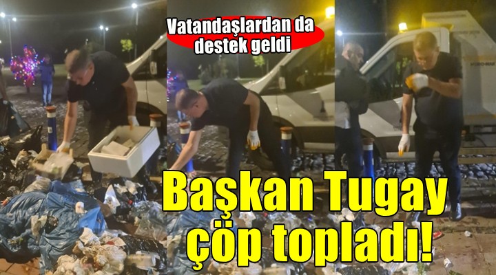 Bugün akşam saatlerinde Alsancak Kordon çevresinde çöp toplayan Başkan Tugay'a çevredeki vatandaşlar da destek verdi. Başkan Tugay, çöp toplanmasına tepki gösteren grevdeki bazı işçilere "Buna karışamazsınız. Grev yapan insanlar evine gider. Bu çöp buradan kalkacak" dedi.