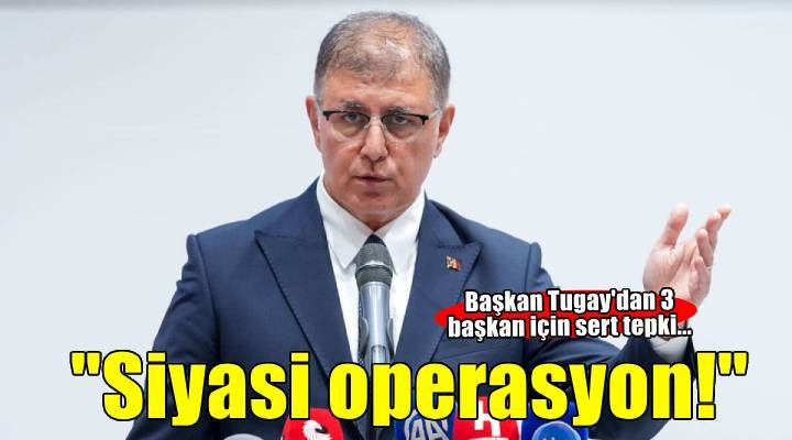 İzmir Büyükehir Belediye Başkanı Cemil Tugay, CHP'li belediyelere bu sabah düzenlenen yeni bir operasyonda Adana Büyükşehir Belediye Başkanı Zeydan Karalar, Adıyaman Belediye Başkanı Abdurrahman Tutdere, Antalya Büyükşehir Başkanı Muhittin Böcek'in gözaltına alınmasına tepki gösterdi.