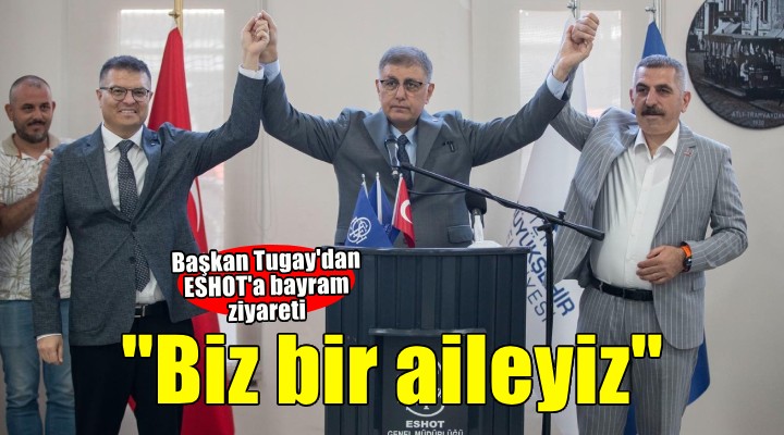 İzmir Büyükşehir Belediye Başkanı Dr. Cemil Tugay, Kurban Bayramı öncesinde İZSU’nun ardından ESHOT Genel Müdürlüğü personeli ile bayramlaştı. Başkan Tugay’ı Buca Gediz Atölyesi’nde İzmir Büyükşehir Belediyesi Genel Sekreter Yardımcısı ve ESHOT Genel Müdürü Övünç Özgen karşıladı. Bayramlaşmaya İzmir Büyükşehir Belediyesi Başkan Vekili Dr. Zafer Levent Yıldır, İzmir Büyükşehir Belediyesi Genel Sekreter Yardımcısı Prof. Dr. Pınar Okyay, Devrimci İşçi Sendikaları Konfederasyonu (DİSK) Genel İş Sendikası 1 No'lu Şube Başkanı Engin Topal da katıldı.