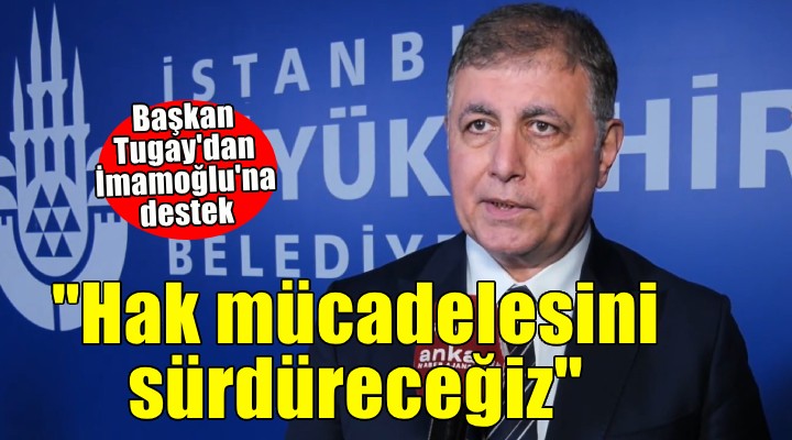 İzmir Büyükşehir Belediye Başkanı Cemil Tugay, İstanbul Saraçhane'de Ekrem İmamoğlu'na destek için düzenlenen mitinge katıldı. Burada Anka Haber Ajansı'na konuşan Tugay, “Hak mücadelesini sürdürmeye devam edeceğiz” diyerek mücadele vurgusu yaptı. Başkan Tugay şunları söyledi: