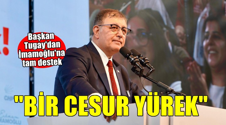 Türkiye'nin uzun süredir çok büyük bir adaletsizliğin pençesi altında olduğunu söyleyen Tugay, “Yoksulluk, işsizlik bir tarafa özgürlüklerin kısıtlandığı, insanların iki kelime eleştiri yapamadığı günlerdeyiz. Öylesine bir dönemdeyiz ki iş insanları bile şikayet ettiği zaman kolayca göz altına alınıyor. Siyasetçileri, gazetecileri, sivil toplum kuruluşu temsilcilerini söylemiyorum bile... Bu ortamda bize sorunların üzerine cesaretle gidecek, halkçı devlet yapısını kuracak bir devrimci lazım. Ülkemizin gül yüzlü çocuklarının, fikri hür, vicdanı hür gençlerinin geleceğini kuracak, onlara umut olacak bir lider lazım. Bize ülkede yokluğu ve yoksulluğu bitirecek bir lider lazım. Doğusundan batısına toplumun her bir kesimini birbiri ile kucaklaştıracak, her türlü kutuplaşmanın önünde duracak bir lider lazım. Bu lider bugün burada. Buna inanıyoruz. Ekrem başkanım bu kutsal yolculuğu İzmir'den başlatmaya karar verdi. İzmir başlangıçların şehridir. Kurtuluşun ve kuruluşun şehridir. Haksızlıklara karşı direnişin şehridir. O nedenle bu yolculuğun ilk durağında, değerli Ekrem İmamoğlu'na ev sahipliği yapmak bizler için onurdur. Biz bu devrim, adalet, demokrasi, hukuk yolunun bu ahlak yolunun yoldaşıyız. Yanındayız. Bu yolculukla beraber, yürekten inanıyoruz ve biliyoruz ki önce CHP ayağa kalkacak. Sonra Türkiye ayağa kalkacak. Ve sonunda CHP kazanacak Türkiye kazanacak” diye konuştu.