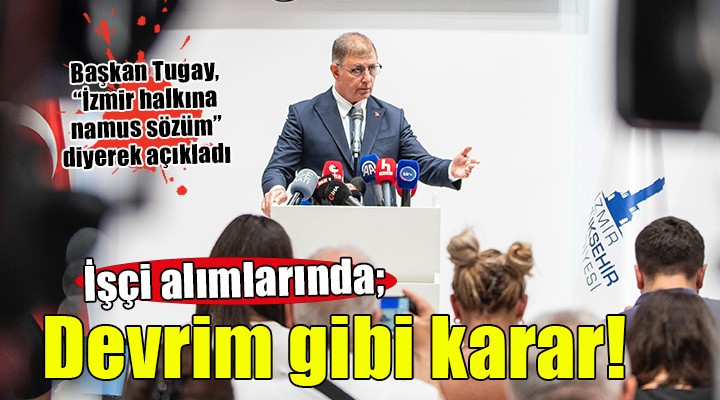 Türkü ERBİL/SONKALEİZMİR-İzmir Büyükşehir Belediye Başkanı Cemil Tugay, Egemenlik Evi'nde düzenlediği basın toplantısında dikkat çeken mesajlar verdi. Başkan Tugay, İzmir'de uzun yıllardır halkın tepkisini çeken işe alımlarla ilgili devrim niteliğindeki kararını da açıkladı. Tugay, hiçbir siyasetçinin etkisi ile işe alım olmayacağını, ilgili birimlerin değerlendirmeleri sonucu ihtiyaca göre alınacak personelin de gönüllü vatandaşlardan oluşan kuracakları Halk Komitesi tarafından denetleneceğini duyurdu.