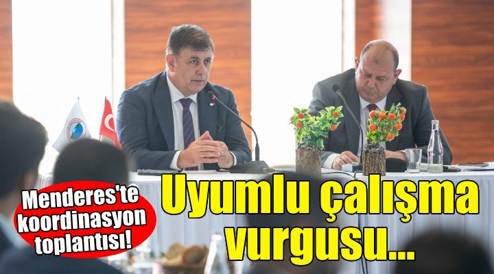 İzmir Büyükşehir Belediye Başkanı Dr. Cemil Tugay, Büyükşehir ve Menderes Belediyesi arasındaki koordinasyonu sağlamak, yurttaşların sorunlarına hızlı çözüm üretmek amacıyla Menderes Belediye Başkanı İlkay Çiçek, ilçe belediyesi yöneticileri ve meclis üyeleri ile koordinasyon toplantısı yaptı. Menderes Belediyesi Nikah Sarayı ve Kongre Sanat Merkezi’ndeki toplantıya İzmir Büyükşehir Belediyesi ve İZSU bürokratları katıldı.