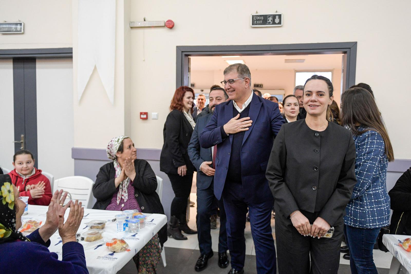 Ramazan ayının kutsal bir ay olduğunu vurgulayan Başkan Cemil Tugay, “Hepimizin iyilik istediği, iyiliği paylaşarak çoğaltmayı çok istediğimiz bir ay. Ben de halkımızın tamamı için, ülkemiz için, şehrimiz için Allah kabul ederse yüreğimden dua ediyorum. Ülkemizde yoksulluk olmasın, işsizlik olmasın. Hiçbir can acı çekmesin, eziyet çekmesin, kötü gün görmesin. Allah türlü felaketten, afetten, kötülükten güzel ülkemizi, güzel şehrimizi, güzel insanlarımızı korusun. Sizleri de bu duaya eşlik etmeye davet ediyorum. Yüreğimizdeki iyiliği çoğaltalım. Bizler sizlere hizmet etmek için bu makamlara geldik. Yediğiniz içtiğiniz her şey zaten sizin. Bizler organizasyon yaparak aracılık etmeye çalışıyoruz. İnşallah ülkemiz zenginlikler, bolluklar görsün, bereket görsün ve bu sofralarda hep beraber çok daha mutlu günlerde bir arada olalım. Allah bize güç versin, imkân versin, biz de sizlere daha iyi hizmet edelim” diye konuştu.