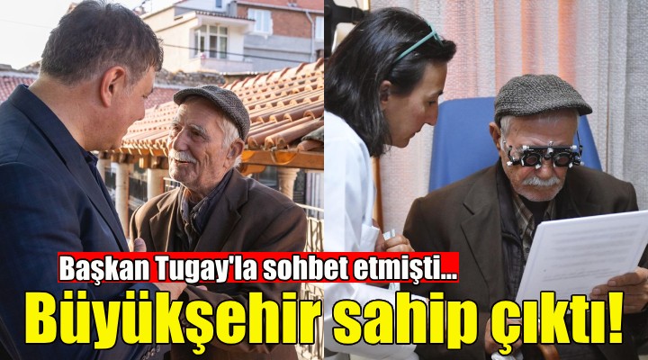 Ramazan Bayramı’nda ilçe turu yapan İzmir Büyükşehir Belediye Başkanı Dr. Cemil Tugay, Kınık’ta parkta tek başına oturan duyma rahatsızlığı olan 86 yaşındaki Cemil Merttürk ile bayramlaştı. Kulak başta olmak üzere göz ve solunum yolları ile ilgili rahatsızlıkları olan Merttürk, Başkan Dr. Cemil Tugay’ın isteği doğrultusunda geçen Salı günü evinden alınarak İzmir Büyükşehir Belediyesi Eşrefpaşa Hastanesi’ne getirildi. Eşrefpaşa Hastanesi Başhekim Yardımcısı Uzman Doktor Bayram Köse, Cemil Merttürk’ü karşıladı.