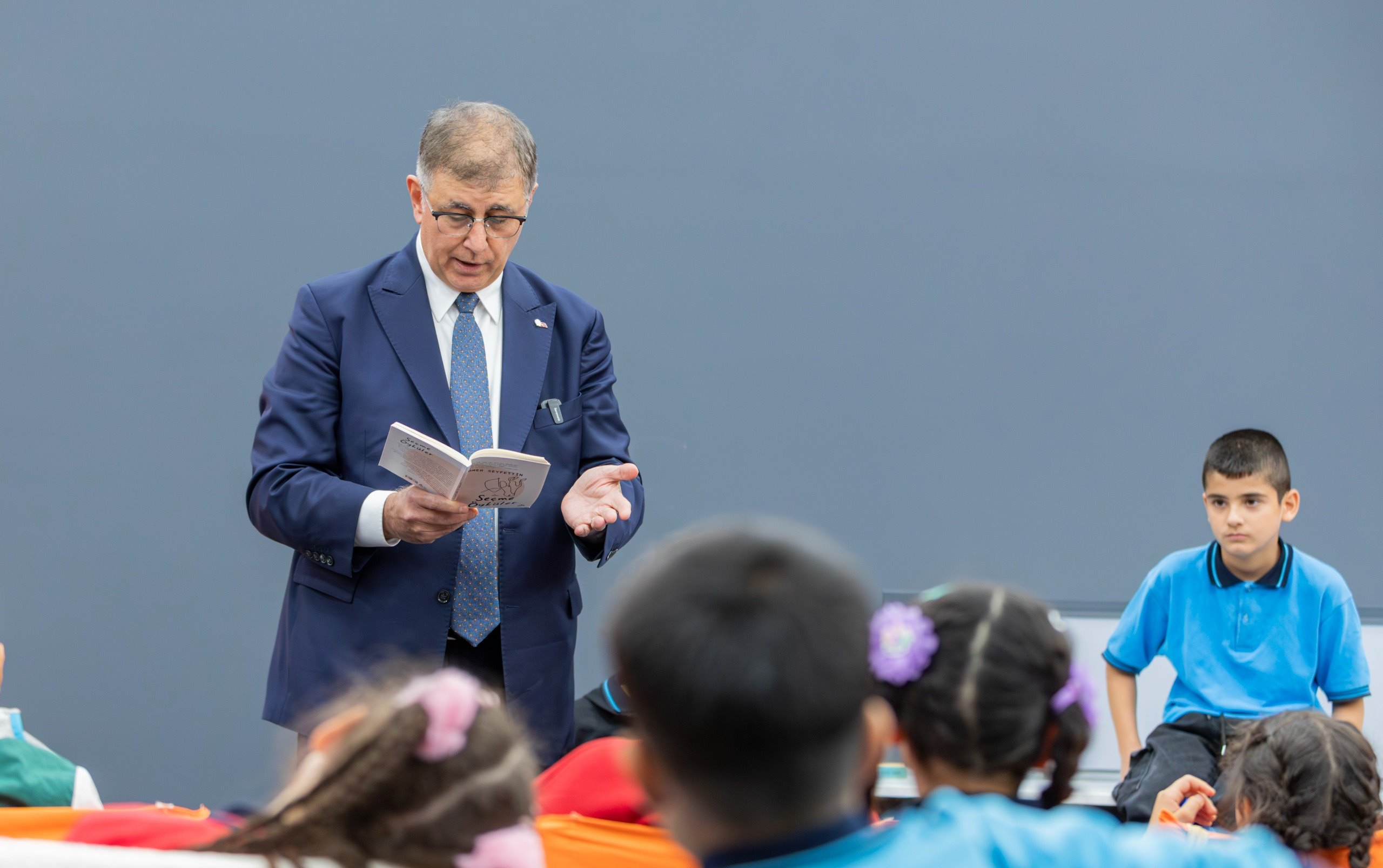 Çocuklara kitap okumanın önemini aktaran Başkan Tugay, “Hikâyeler, güzel ve ilginç olayları okuyarak canlandırmamıza olanak tanıdığı için güzeldir. Hikâyede anlatılan şeyi gerçekten yaşıyormuşuz gibi düşünmeye çalışırız. Ömer Seyfettin, eski zamanlarda yaşamış Türk yazarlardan biridir. Onun çocuklar için yazdığı hikâyelerden oluşan kitabını, babam bana ilkokul 2. sınıftayken hediye etmişti. O hikâyeleri okuduktan sonra kitap okumayı çok sever oldum. Hayal etmeyi herkes sever. Hayal etmek için kitaplar çok iyidir. Yaşamadığımız, görmediğimiz pek çok şeyi kitaplar aracılığıyla sanki yaşıyormuş ve görüyormuşsunuz gibi düşünebilirsiniz” dedi.