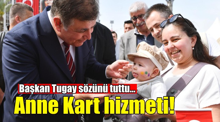 İzmir Büyükşehir Belediye Başkanı Dr. Cemil Tugay’ın kampanya dönemindeki seçim vaatlerinden olan Anne Kartı da hayata geçti. Yeni uygulama ile 0-4 yaş (0-48 ay) arası çocuğu bulunan annelerin belediyeye bağlı toplu taşıma araçlarından ücretsiz faydalanması sağlanıyor. İzmir Büyükşehir Belediyesi’nin uzman ekipleri tarafından yapılan incelemeler sonucunda yardım alması uygun görülen annelerin kartlarına çocukları yanlarındayken kullanmak üzere aylık 60 kontör yüklenmeye başlandı. 4-5 yaş arası çocuğu olan annelere verilen aylık 10 kontörlük kartların da kullanımı sürecek. Uygulamayla, annelerin çocuklarıyla birlikte sosyal hayatta daha aktif yer alabilmesi hedefleniyor. Ay sonuna kadar kontör yüklemelerinin tamamlanması planlanıyor.