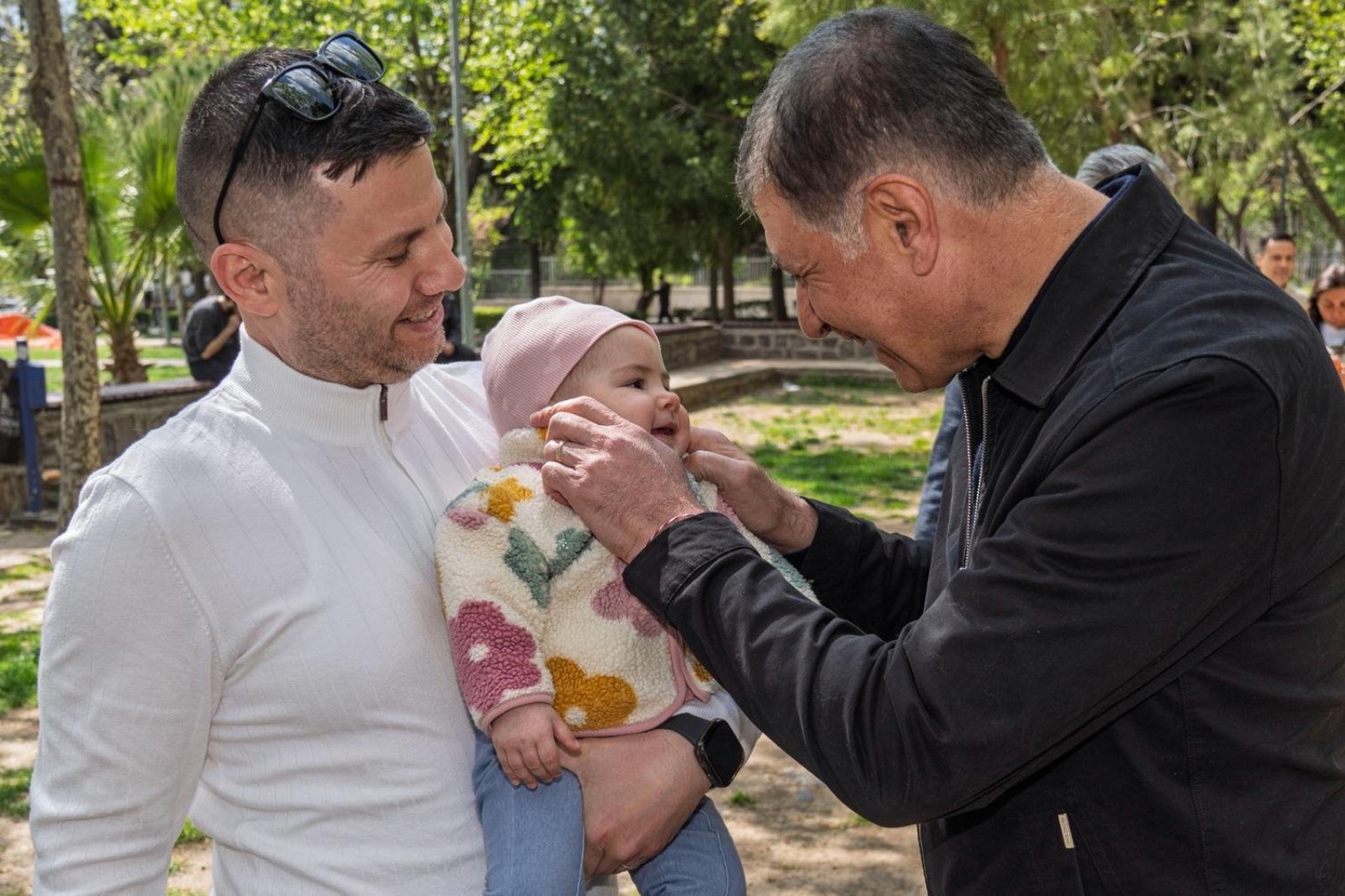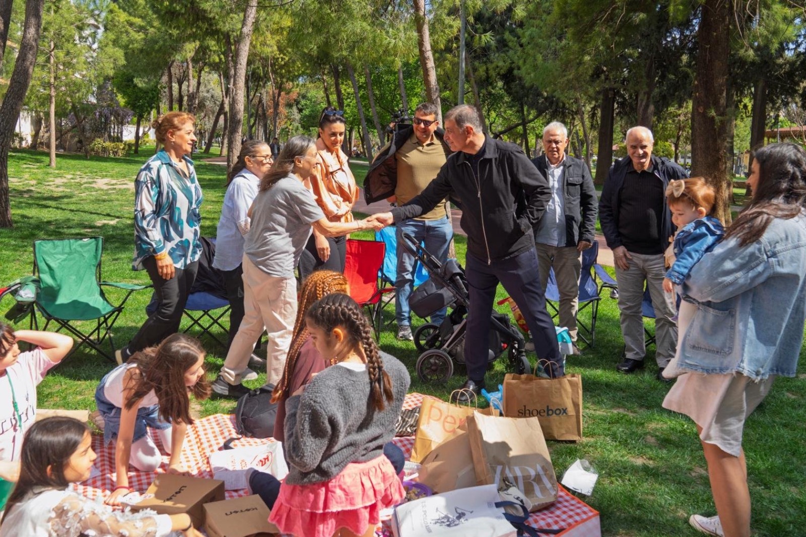 Ziyaret sırasında parkta düzenlenen bir doğum günü kutlamasına denk gelen Başkan Tugay, 10 yaşındaki Karya Göçte ile yeni yaşlarına giren Eylül ve Çınar’ın sevincine ortak olarak çocukların doğum gününü kutladı. Renkli anların yaşandığı parkta çocuklarla yakından ilgilenen Tugay, ailelerle de sohbet etti.