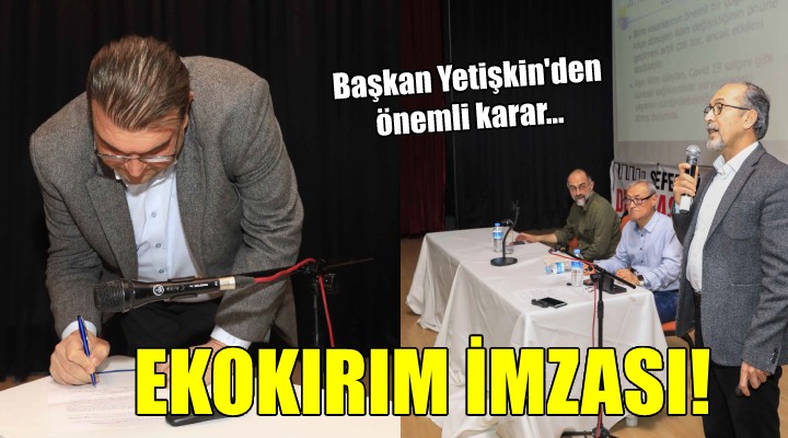 Seferihisar’da gerçekleşen, Prof. Dr Ali Osman Karababa ve Avukat Arif Ali Cangı’nın konuşma yaptığı ‘’Ekokırım Yasası Neden Acil?’’ başlıklı panele katılan Başkan Yetişkin; doğaya karşı işlenen suçlar geri döndürülemez biçimde geleceğimizi katlediyor, bu sebeple bir yurttaş olarak ben de imza atıyorum diyerek destek imzasını attı.