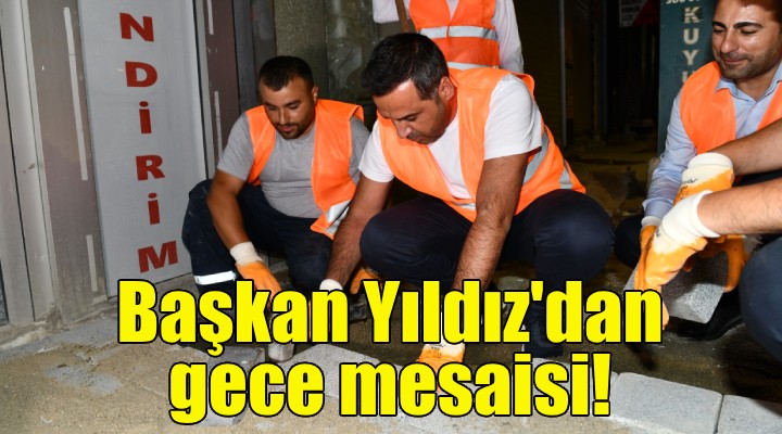 İncelemelerin ardından eldiven ve yeleğini giyen Başkan Yıldız, gece mesaisini sürdüren personelle birlikte taş döşeme ve istifleme çalışmalarında bulundu. Yıldız, çalışmalar sırasında meydandan geçen vatandaşlarla sohbet etmeyi ve önerilerini dinlemeyi de ihmal etmedi.