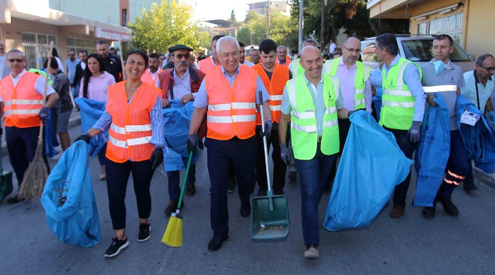 Sabah erken saatlerde Bahriye Üçok Mahallesi önünde buluşan iki Başkan ellerine faraş ve süpürge alarak çöp topladı, yerleri süpürdü. Muhtarların ve vatandaşların katıldığı temizlik çalışmalarına İzmir Büyükşehir ve Karabağlar Belediyesi temizlik ekipleri de destek verdi. Çalışmalar Limontepe ve Ali Fuat Erdem Mahalleleri’nde de devam etti.