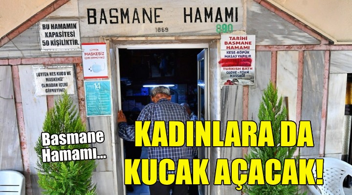 Barınma sorunu yaşayan erkek yurttaşlara pazartesi ve perşembe günleri Tarihi Basmane Hamamı'nın kapılarını açan Büyükşehir Belediyesi, şimdi de aynı uygulamayı kadınlar için başlattı. Hamam bundan böyle bir gün de evsiz kadınlara hizmet verecek.