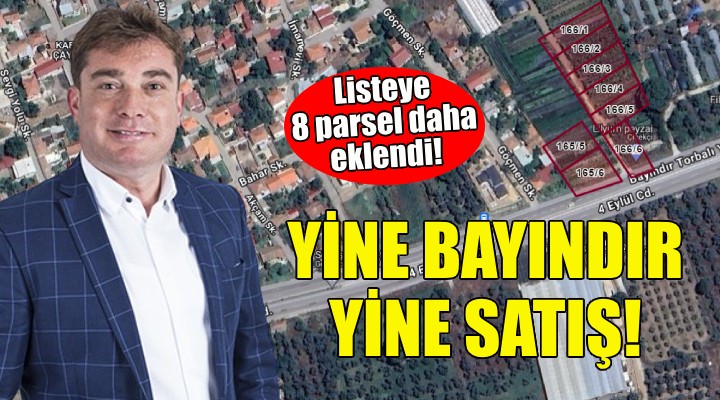 AK Partili Uğur Demirezen yönetimindeki belediye daha önce satışa konulan parsellere komşu konumdaki 8 arazinin daha satışa çıkarıldığını duyurdu. Bayındır-Torbalı yolu üzerindeki araziler için 550 bin TL ile 661 bin TL arasında değişen muhammen bedeller belirlendi.