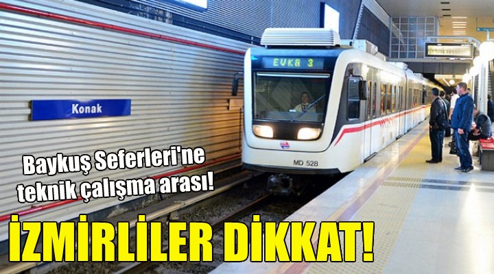 ''İzmir Metrosu'nda 8 Ekim Cuma ve 9 Ekim Cumartesi geceleri teknik bir çalışma sebebiyle Baykuş Seferleri yapılamayacaktır. Konak ve Karşıyaka tramvaylarında Baykuş Seferleri planlarına uygun şekilde devam edecektir. Yolcularımıza saygı ile duyurulur.''