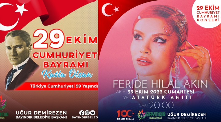 Bayındır’da Cumhuriyet Bayramı çeşitlik etkinliklerin yanı sıra 29 Ekim Cumartesi gecesi düzenlenecek konserle kutlanacak.