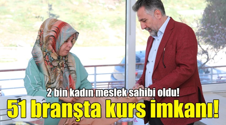 Bayraklı Belediyesi Kadın ve Aile Müdürlüğü ile Halk Eğitim Merkezi iş birliğinde 16 farklı merkezde açılan hobi ve meslek edindirme kurslarından, son üç yılda 2 bin 31 kadın faydalandı. Uzman eğiticiler eşliğinde, 51 farklı branşta açılan kurslar hem eğlenme hem de öğrenme imkanı sundu. Aile ekonomilerine katkı sunmak isteyen kadınlar, ürettikleri el emeği ürünleri satarak gelir elde etme imkanı da yakaladı.