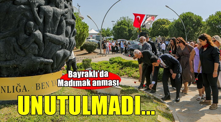 Bayraklı Belediyesi tarafından Nafiz Gürman Mahallesi’ndeki 2 Temmuz Anıtı’nda düzenlenen törene Bayraklı Belediye Başkanı İrfan Önal, CHP Bayraklı İlçe Başkanı Didem Gültekin, İzmir Alevi Kültür Derneği Yamanlar Cemevi Başkanı Mehmet Bozkurt, Aşık Manzuni Şerif Cemevi dedelerinden Kamil Bakır, ADD temsilcisi Umutcan Yaylalı, meclis üyeleri, muhtarlar, sivil toplum kuruluşlarının temsilcileri ve vatandaşlar katıldı. Saygı duruşu ile başlayan etkinlikte hayatını kaybedenler anısına anıta karanfiller bırakıldı, anı defterine düşünceler yazıldı, barış güvercinleri uçuruldu.