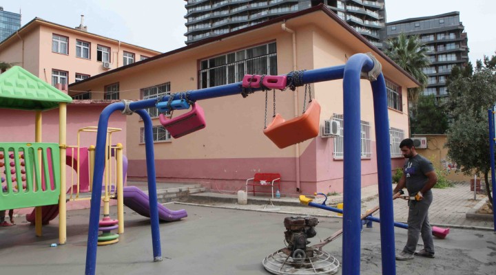 Bayraklı Belediyesi, okullardaki ihtiyaçların giderilmesi için yaptığı çalışmalarda ilçedeki 50 okulun bakım, onarım, boya ve temizlik işlerini sürdürüyor. Bu kapsamda Bayraklı Belediyesi Park ve Bahçeler Müdürlüğü ekipleri, öğrencilerin okul bahçelerinde mutlu ve güvenli bir şekilde oynamalarını sağlayabilmek için çimlendirme yaparken, çöp kutularını da yeniledi. Okulların içinde ve çevresinde öğretmenlerin ve öğrencilerin rahatça zaman geçirmeleri için yeni yeşil alanlar ve oturma grupları oluşturuldu. Bitkilendirme ve budama işlemlerini tamamlayan ekipler, yabancı otları temizleyerek, çocuk oyun gruplarını ve oyun alanlarını kauçuk zeminle kapladı. Ekipler ayrıca, anaokuluna giden ve 3-6 yaş arasındaki çocuklara çevre bilincini aşılamak, çevreye duyarlı bireylerin yetişmelerine katkıda bulunmak amacıyla okullara küçük hobi bahçeleri de kazandırdı.