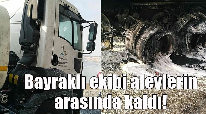SONKALEİZMİR-Muğla Marmaris'te bir haftayı aşkın süredir süren orman yangınına müdahale etmek için giden Bayraklı Belediyesi ekipleri büyük tehlike atlattı. Belediye Başkanı Serdar Sandal, sosyal medya hesabından talihsiz olayın fotoğraflarını yayınlarken şu ifadeleri kullandı: