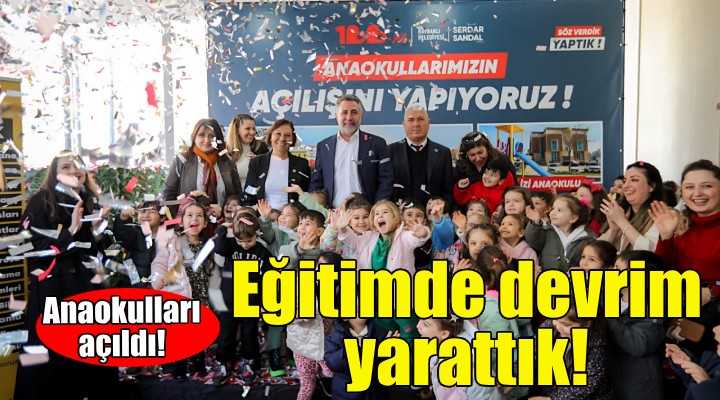 Bayraklı’daki eğitim yatırımları, inşa edilen okul öncesi eğitim kurumları ve öğrencilerinin başarılarıyla fark yaratan Bayraklı Belediyesi, inşasını tamamlayarak hizmete sunduğu 3 anaokulunun açılışını yaptı. 2 anaokulunun yapımına devam edildiği bir anaokulunun da yakın zamanda temelinin atılacağı belirtildi. 75’inci Yıl Mahallesi’ndeki Elif Bebek Anaokulu bahçesinde düzenlenen açılış törenine Başkan Serdar Sandal’ın yanı sıra CHP Bayraklı İlçe Başkanı Didem Gültekin, meclis üyeleri, muhtarlar, sivil toplum örgütlerinin temsilcileri, öğrenciler, veliler ve vatandaşlar katıldı. Başkan Sandal, açılış kurdelesini katılımcılar ve çocuklarla birlikte kesti.