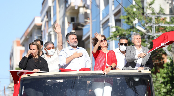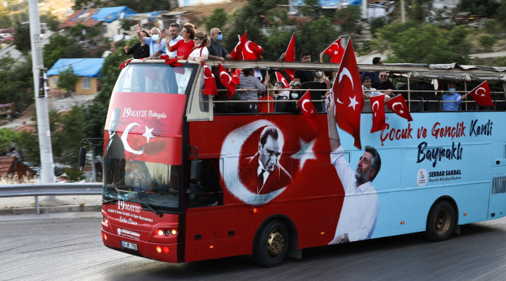Bayraklı Belediyesi tarafından 19 Mayıs Atatürk’ü Anma, Gençlik ve Spor Bayramı’nın 102’nci yılı sokak sokak gezilerek kutlandı. Marşları ve şarkıları hep bir ağızdan söyleyen vatandaşlar da bu büyük coşkuya evlerinin balkonlarından, bahçelerinden, araçlarından Türk bayrakları ve alkışlarla destek verdi.