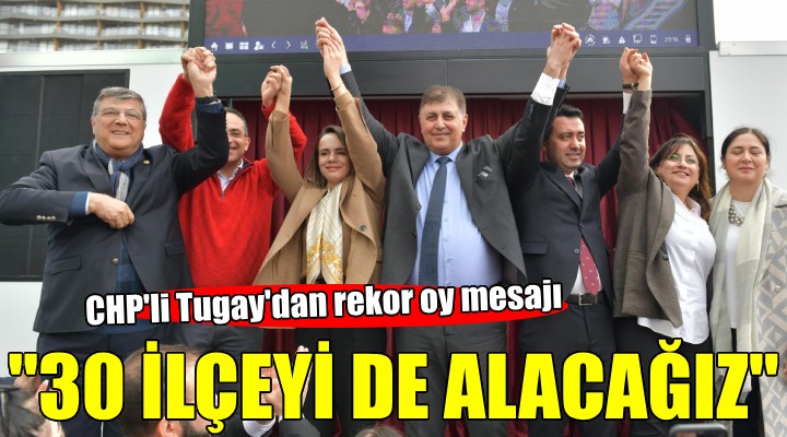 Tugay, 30 ilçeyi de kazanacaklarını belirtirken şunları söyledi : “CHP adayı olarak tercih ettiği için bize hayatımızın en büyük gururlarından birisini armağan etti. Elbette ki bu gurur aynı zamanda sorumluluk demek. O sorumluluk bizlerin çok çalışmasını çok dikkatli davranmasını ve gereğini yapmamızı gerektiriyor. Bunu yapmaya hazırız değerli yoldaşlarım. Çünkü bizler bu şehrin ve bu ülkenin yetiştirdiği çocuklarız. Bizler doğduğundan beri Cumhuriyet Halk Partisi'nin gölgesini üzerinde hisseden çocuklarız. Bizler bu halkın her ferdinin ayrı ayrı hakkını gözetecek olan ama ihtiyaç olduğu zaman aynı zamanda herkesin kapısının önünde öncelikle dezavantajlı, sosyal ihtiyaçlı daha fazla desteğe ihtiyacı olan insanlarımız olmak üzere kapısının önünde olacağız. Ve bugün burada gördüğünüz bu gurur tablosunda özellikle değerli başkanım Olgun Atilla ve değerli eski milletvekilimiz genel sekreterimiz aynı zamanda Bornova Belediye Başkanlığımızı yapmış olan Kamil Okyay Sındır’dır. Huzurlarınızda olmak istediler. Biz hep beraber bu görüntüyü vermek istedik.Çünkü bugün görev bizdedir. Yarın bir başka partili arkadaşımızda olabilir. Ama neticede hepimiz bu ailenin bir mensubu olarak hiç bir zaman kim aday oldu, kim aday olmadı tartışması içerisine girmeden bir hazımsızlık hissetmeden, ne zaman bize görev düşerse bunu yapmaya hazırız. Ama bu yollar beraber yürünüyor.Yalnız yürünmüyor. Ben partiye üye olduğum ilk günden bugüne kadar her seçimde her yarışta, her mücadelede günü geldi Gezi gibi olaylarda kendi partililerimizin nasıl bir dayanışma içerisinde olduğunu bizlere nasıl sahip çıktığını çok iyi gördüm. Bunun değerini bilmemiz gerekiyor. Yine birlikte olacağız. Yine birimiz düştüğü zaman diğerimiz tutacak. Bu mücadeleyi cumhuriyetimiz için yapacağız. Halkımız için yapacağız, Gazi Mustafa Kemal Atatürk için yapacağız. Ve biz bu mücadeleyi sokaklarında büyüdüğümüz büyüklerimizin başımızı okşadığı, karnımızı doyurduğumuz, havasını soluduğumuz, iyi gününü, kötü gününü yaşadığımız, bu şehir için canımız, İzmir için yapacağız. Sakın ola, sakın ola sizi mahcup edeceğimizi düşünmeyin. Sakın ola sizsiz yol yürüyeceğimizi düşünmeyin. Bugün burada olduğunuz gibi birlik beraberlikiçerisinde bizim size duyduğumuz sevgi ve saygıyla sizin de bize göstereceğiniz destekle bu seçim de kazanılacak. İzmir hiçbir zaman Cumhuriyet Halk Partisi dışında bir yere teslim edilmeyecek. Ben size söz veriyorum değerli yoldaşlarım. Bu seçimde oy rekoru kıracağız. Bu seçimde 30 ilçeyi birden alacağız. Genel başkanımızla parti örgütlerimizle, yoldaşlarımızla, ilçe belediye başkan adaylarımızla, eşlerimizle, ailelerimizle hep beraber bu zaferleri elde edeceğiz. Az önce çalan şarkı ilk defa burada çaldı. Benim şarkım. O şarkıda diyor ki zaferi kazanacak sonra Gündoğdu'da hep beraber kutlayacağız."
