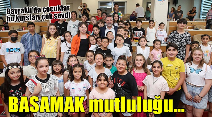 Kültür- sanat ve hobi kurslarını Bayraklı Sanat ve Müzik Akademisi (BASAMAK) çatısı altında toplayan Bayraklı Belediyesi'nin 8 branşta açtığı yaz kurslarına 10 günde 200’e yakın öğrenci katıldı. Haftanın 4 günü eğitim alan çocuklar; eğlenirken öğreniyor, yaz tatillerini verimli geçiriyor. Bayraklı Belediye Başkanı Serdar Sandal “Eğitimlerinin her aşamasında destek olduğumuz çocuklarımızı yaz tatilinde de yalnız bırakmıyoruz. Onların mutlu olduğunu görmek bizim de mutluluğumuzu artırıyor” dedi.