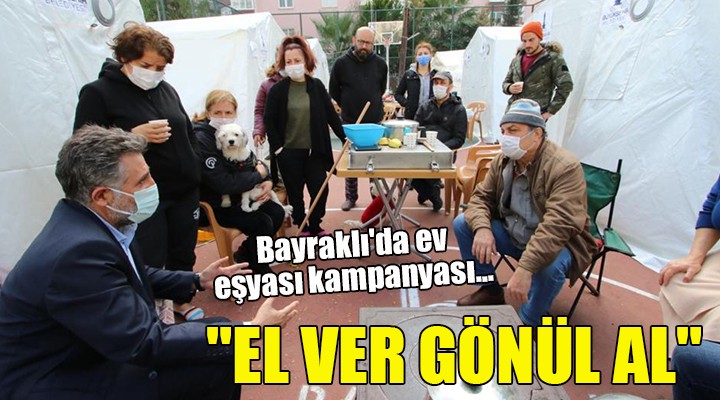 İzmir Büyükşehir Belediyesinin "Bir kira bir yuva" kampanyası gibi iyilik ağını büyütecek "El Ver Gönül Al" uygulaması kapsamında eşya desteğinde bulunmak isteyen yardımsever vatandaşlarla ihtiyaç sahipleri Bayraklı'da bir araya geliyor. Büyükşehir Belediyesi ile ortaklaşa yürütülen kampanya ile tüm ihtiyaç sahiplerinin taleplerinin karşılanması hedefleniyor.