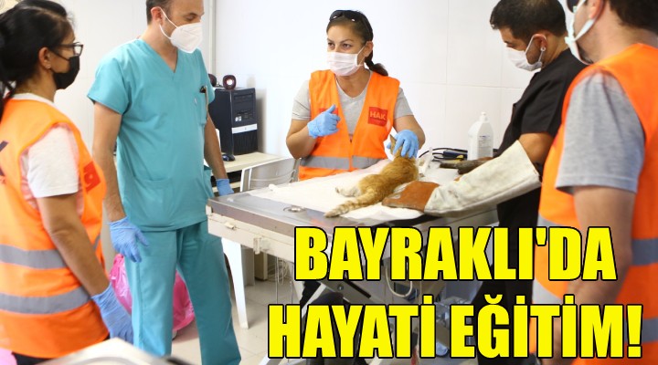 Başkan Sandal'ı ziyaretin ardından Bayraklı Belediyesi Veteriner İşleri Müdürlüğü'ne geçen dernek üyesi hayvanseverlere acil durumlarda hayvan kurtarma eğitimi verildi. Hayvanın nasıl yakalanması gerektiği, nasıl tutulması gerektiği ve ilk yardımda yapılması gerekenler anlatıldı.