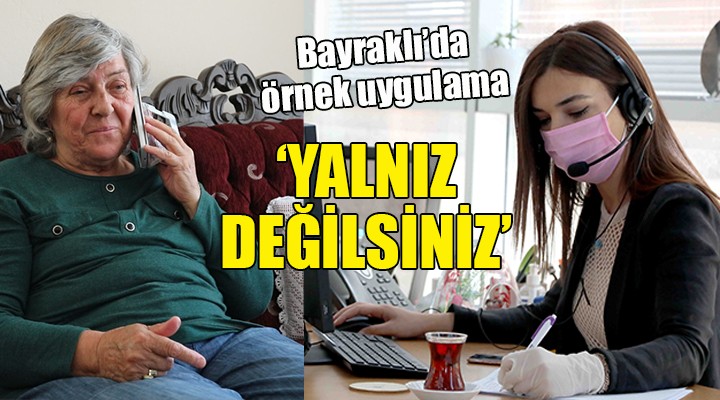 Salgının ilk gününden itibaren ilçede aldığı önlemlerle vatandaşın yanında olan Bayraklı Belediyesi, 65 yaş üstü yurttaşları da yalnız bırakmıyor. İlçedeki 65 yaş üstü tüm yurttaşların isimlerini belirleyen belediye ekipleri, her gün düzenli olarak yurttaşlara telefonla ulaşıyor. Görevliler, hâl hatır sorarak, talep, öneri ve şikayetleri dinleyip, not alıyor. İhtiyaç sahiplerinin taleplerine kısa sürede yanıt veriliyor.