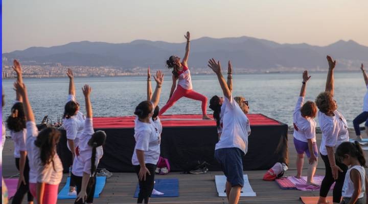 Bayraklı Belediyesi, 21 Haziran Dünya Yoga Günü dolayısıyla Bayraklı sahilinde etkinlik düzenledi. Belediyenin yoga kursiyerleri ve çevre ilçelerden gelen vatandaşların katılımıyla, gün batımında eğitmen eşliğinde çeşitli yoga pozisyonları ve nefes teknikleri uygulandı. Güneşin batışını selamlayarak başlayan seans, katılımcılara hem fiziksel hem de zihinsel bir yenilenme imkanı sağladı. Meditasyon ve esneme hareketleriyle de stresten uzak, doğa ile iç içe spor yapma olanağı sunulan etkinliğe her yaştan vatandaş ilgi gösterdi.