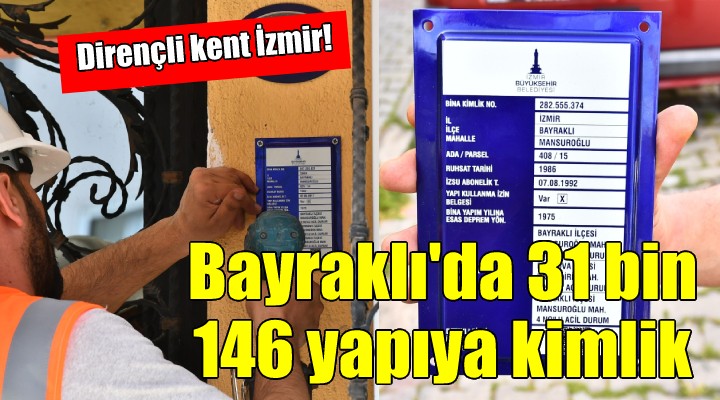 İzmir Büyükşehir Belediyesi Türkiye’nin en kapsamlı deprem araştırmaları ve risk azaltma projelerini hayata geçirerek dirençli kent oluşturma yolunda pilot bölge Bayraklı’nın mevcut yapı stoku envanterini çıkardı. Bu çalışmanın ardından 31 bin 146 yapımının kimlik belgesi hazırlandı. Bayraklı’daki yapıların bilgilerine artık İzmir Büyükşehir Belediyesi internet sitesi www.izmir.bel.tr, Bizİzmir dijital platformu ve Bizİzmir mobil uygulamasından kolaylıkla ulaşılabiliyor.