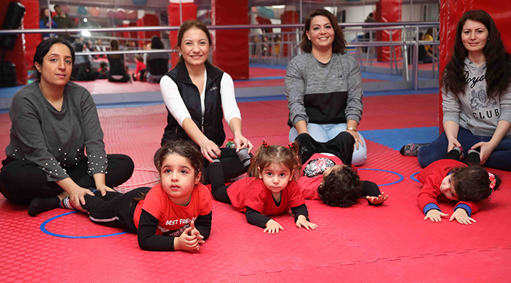 Mustafa Kemal Atatürk Spor Salonu, Onur Açık Hava Tiyatrosu, İhsan Alyanak ve Nafiz Gürman Kültür Merkezlerinde başlayan kurslar, ailelerden büyük ilgi gördü. Jimnastik Eğitmeni Gizem Karayalçın yönetimindeki eğitimler renkli görüntülere de sahne oluyor. Jimnastik ile bebeğin cesaretlendirilmesi sosyal gelişiminin ilerlemesine yardımcı olunduğunu belirten Karayalçın, "Eğitim sayesinde bebeğin becerileri ve kendine güveni de artıyor. Bebeklik döneminden başlayan egzersizler kas gücü ve kas gelişimi sağladığı için, çocukluk çağında spora yöneliş ve sporu yaşam biçimi olarak benimseyen bireyler yetiştirilmesine katkı sağlıyoruz. Minik sporcuların ilgilerini çekecek parkur ve yürüyüş çalışmaları, trambolin sıçramaları, kas gruplarını ve hareket kabiliyetlerini geliştirecek minder aktiviteleri gerçekleştiriyoruz. Kendi yaş grupları ve aileleriyle hareket odaklı çalışma yapan miniklerin gelişimini görmek anneleri de sevindiriyor" diye konuştu.